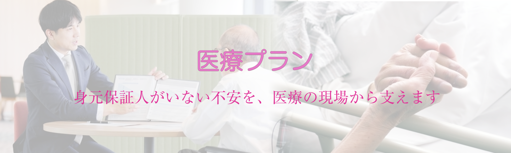医療プランは、入院・手術・転院など、医療の場面で必要になる「身元保証」と「各種手続き」を一体でさせるサービスです